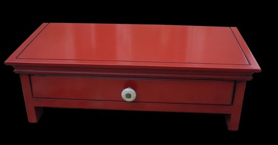 red wood computer monitor stand desktop organizer